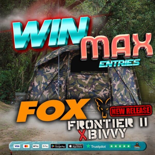 Draw Today at 1:30pmAutomatic Drawdays:hrs:mins:secs0% Sold0/1000MAX ENTRIES INTO FOX FRONTIER II X CAMO BIVVY (£200+)